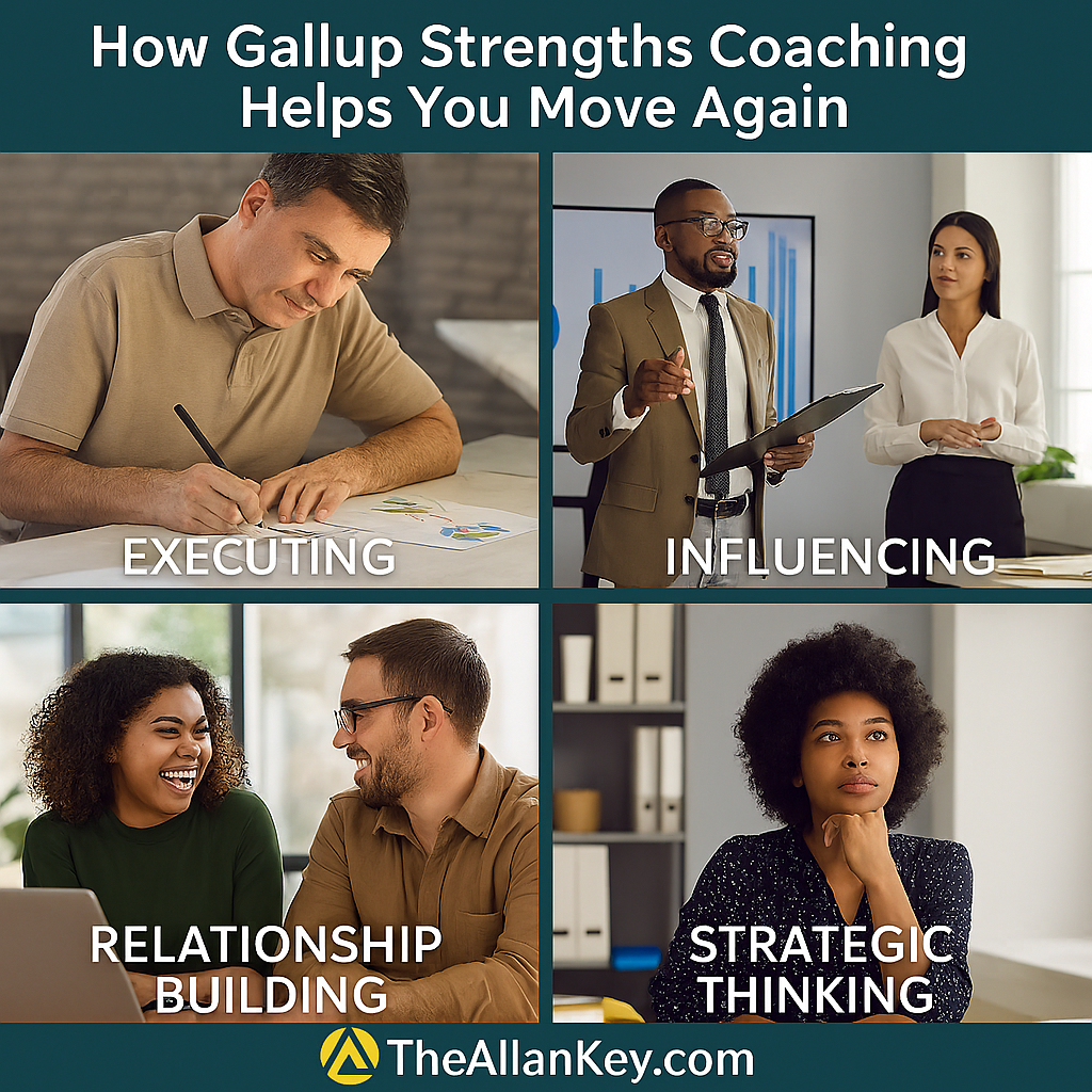 Gallup Strengths coaching restores forward movement by aligning work with wiring. When you operate from your strengths, you don’t just get unstuck—you become unstoppable.